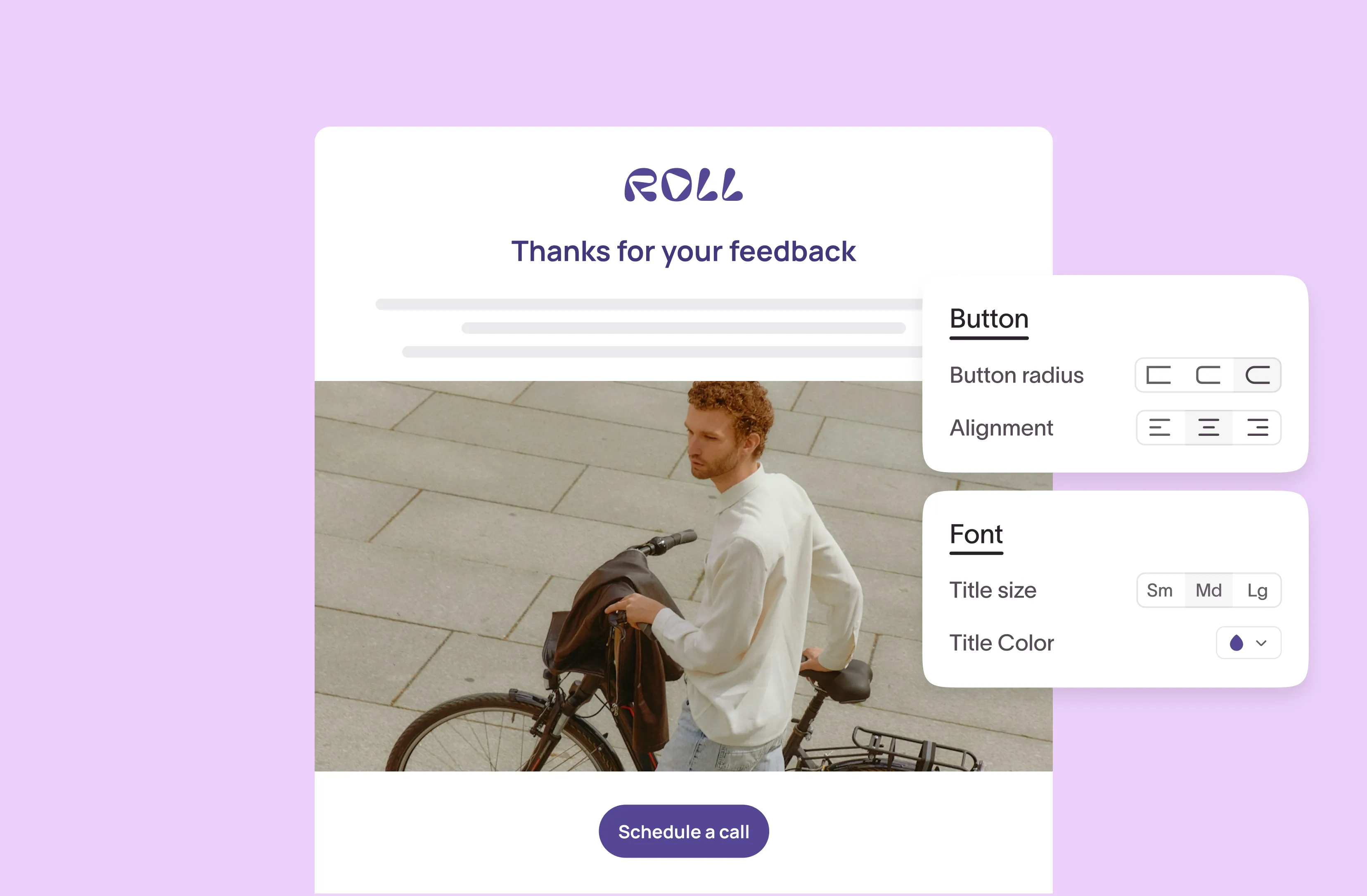 It’s now easier than ever to send emails that look and feel like your forms. Email Builder lets you add logos, headers, CTA buttons, and color to your follow-up emails, so you boost open rates and keep your brand consistent from form to follow-up. Plus, the data you collect with Typeform can be used to segment and personalize your emails, so your audience never feels like they’re getting cookie-cutter outreach.Â